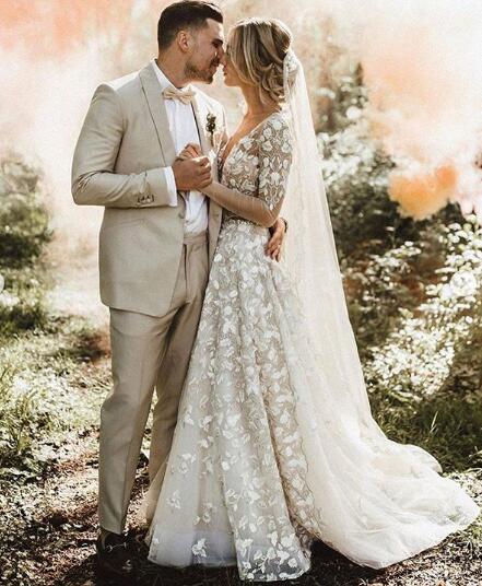 Sexy Wedding Dress, V-neck with Appliques Wedding Dress, Tulle Wedding Dress,588