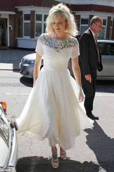 Ankle Length Wedding Dress,Informal Wedding Dress ,Short Sleeve Wedding Gown,665