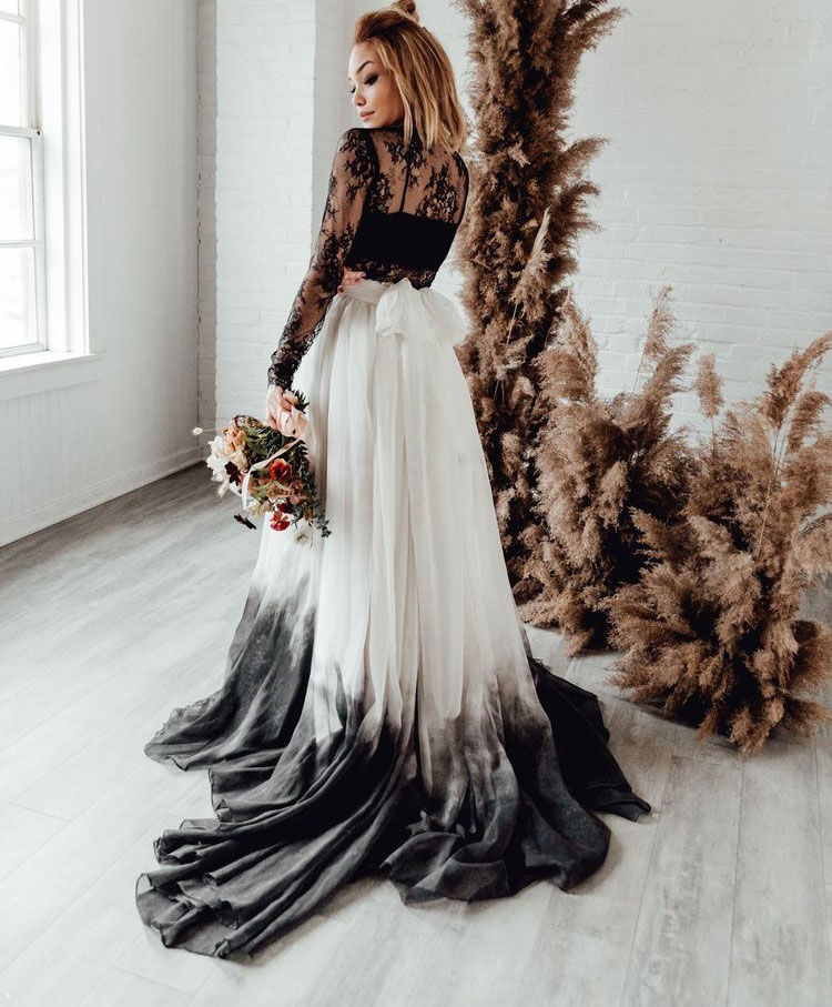 Two Piece Black Wedding Dresses Bridal Gown with Sleeves,853
