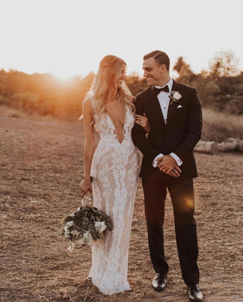 Elegant Beach Wedding Dresses,Lace Bridal Gowns with Beads,Boho Bridal Dresses,859