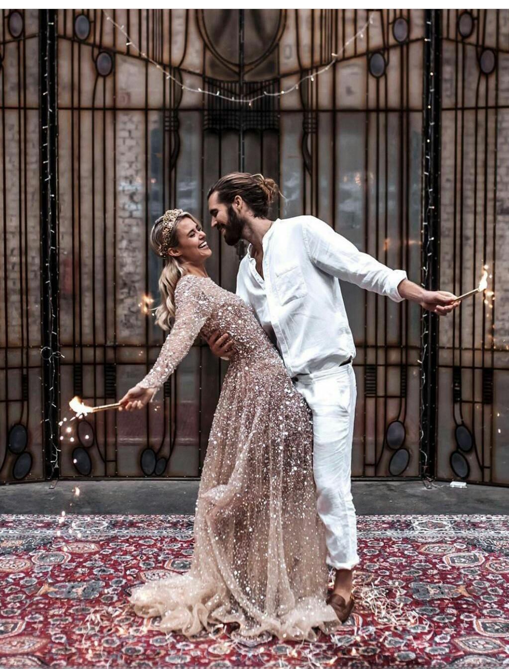 Sprikle A Line Sequins Lace Wedding Dresses Crew Neck Beading Bridal Gowns,879