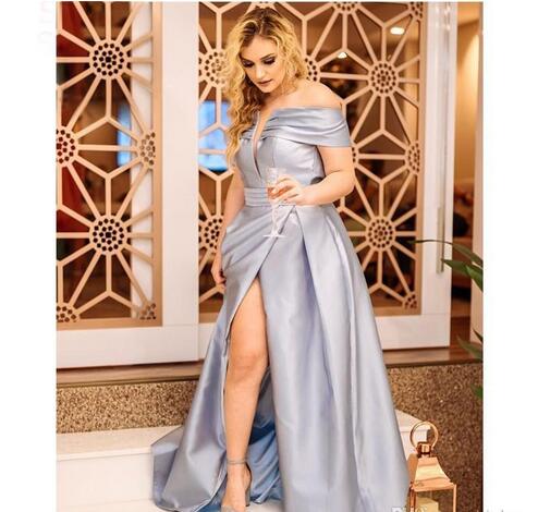 Gorgeous Off the Shoulder Prom Dresses 2021 Plus Size A-line High Split Cheap Special Occasion Dress,880
