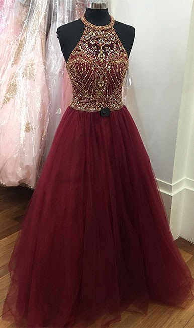 New Arrival A-Line Halter Neckline Prom Dress with Beading,915