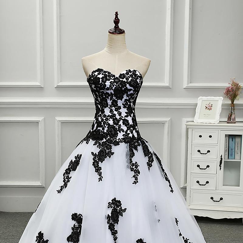 Robe De Mariage Elegant White and Black Wedding Dresses Appliqued Sweetheart Bridal Gowns Tulle Custom Made,1009