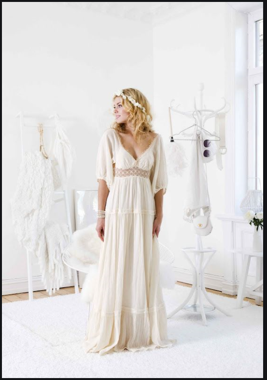 Simple boho wedding dress,half sleeve bridal dress,1033