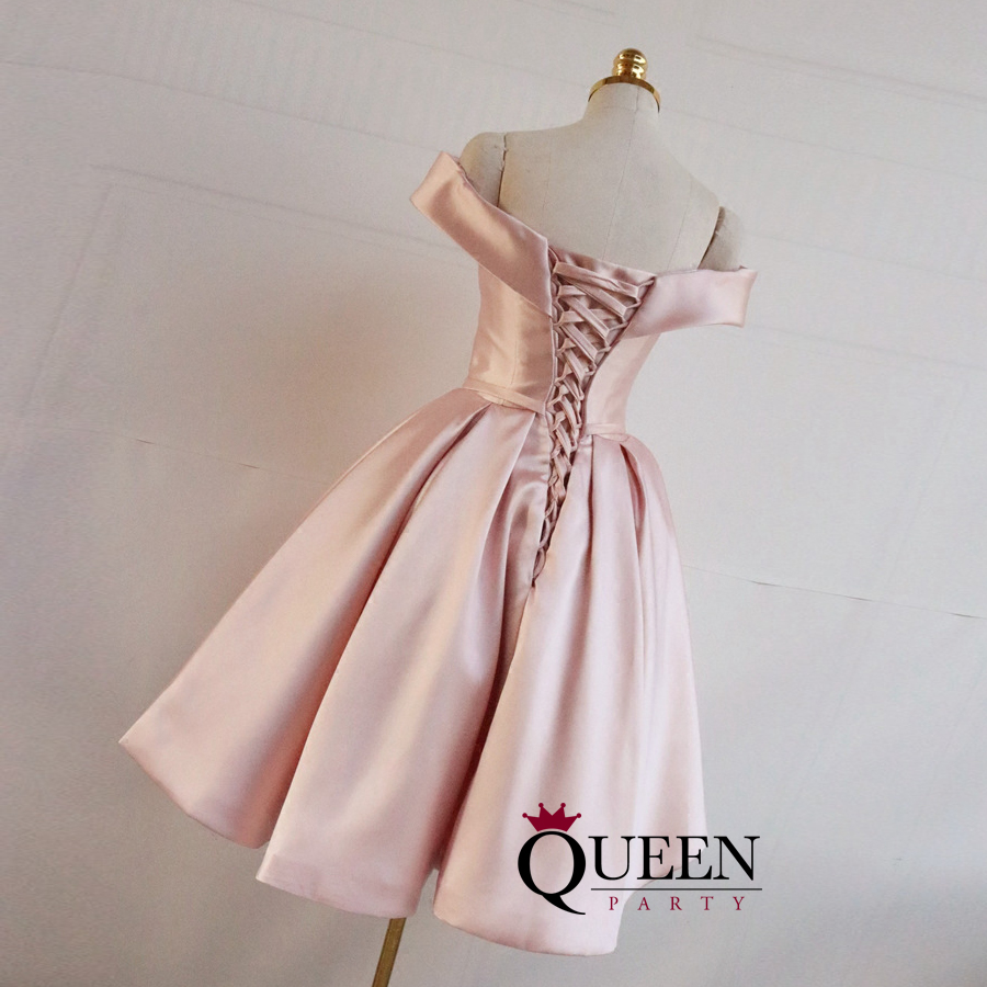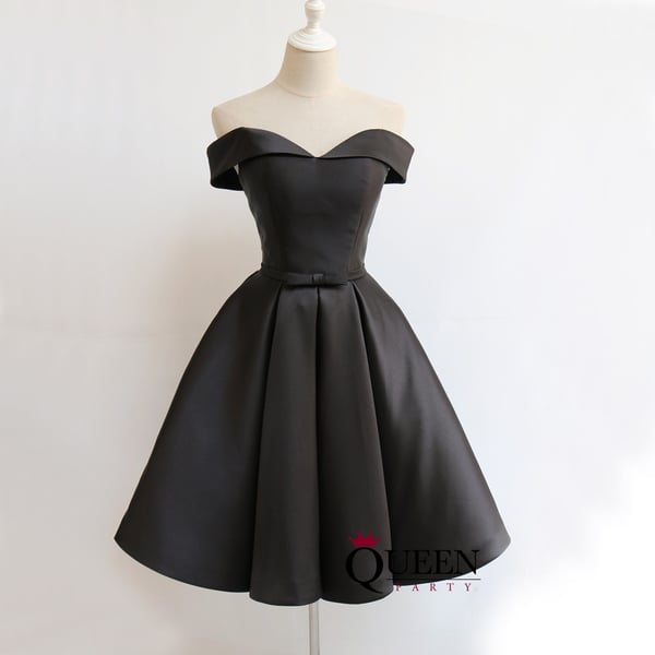 Black/Champagne Off-the-shoulder Satin A-line Short Prom Dress, Homecoming Dress With Lace-Up Back,1036