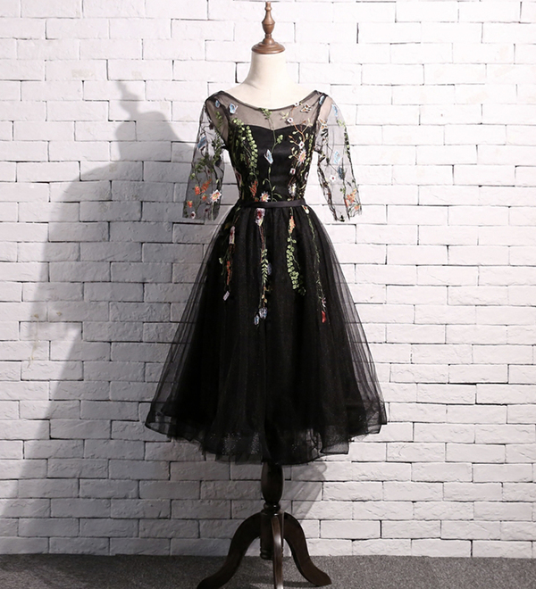 Cute lace short prom dress black homecoming dress,1037