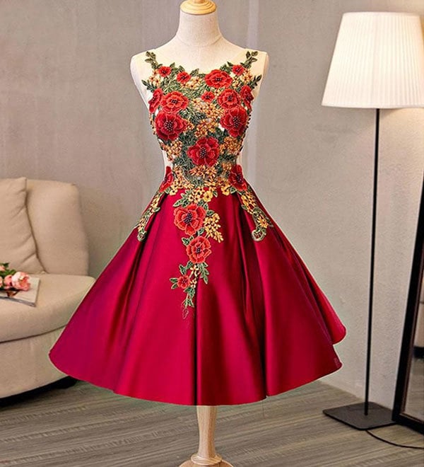 Cute A line lace satin short prom dress, homecoming dress,1081