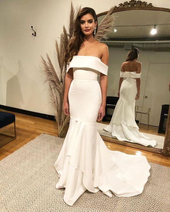 Mermaid Wedding Dress Long White Sweep Train Sleeveless Deep BEATU,1122