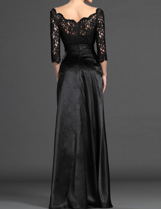 A-Line Off-the-shoulder 3 4 Sleeves Elastic Woven Satin Dress,1148