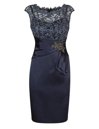 Elegant Short Cap Sleeves Navy Blue Mother of the Bride Dress,1163