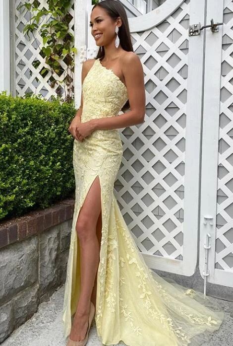 Sheath One Shoulder Yellow Prom Dress,1388
