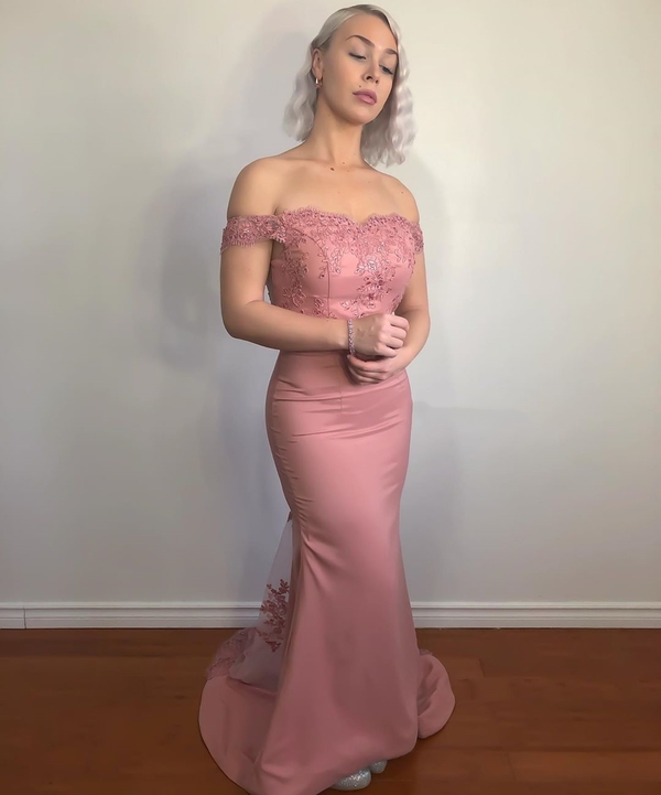 Mermaid Blush Pink Prom Dress with Off the Shoulder,1397