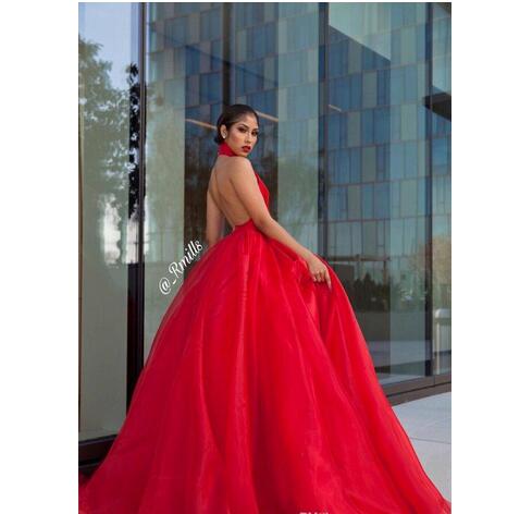 Sexy Open Back Prom Dress Puffy Halter Neck Long Formal Pageant Holidays Wear Graduation Evening Party Gown Custom Made Plus Size,1496