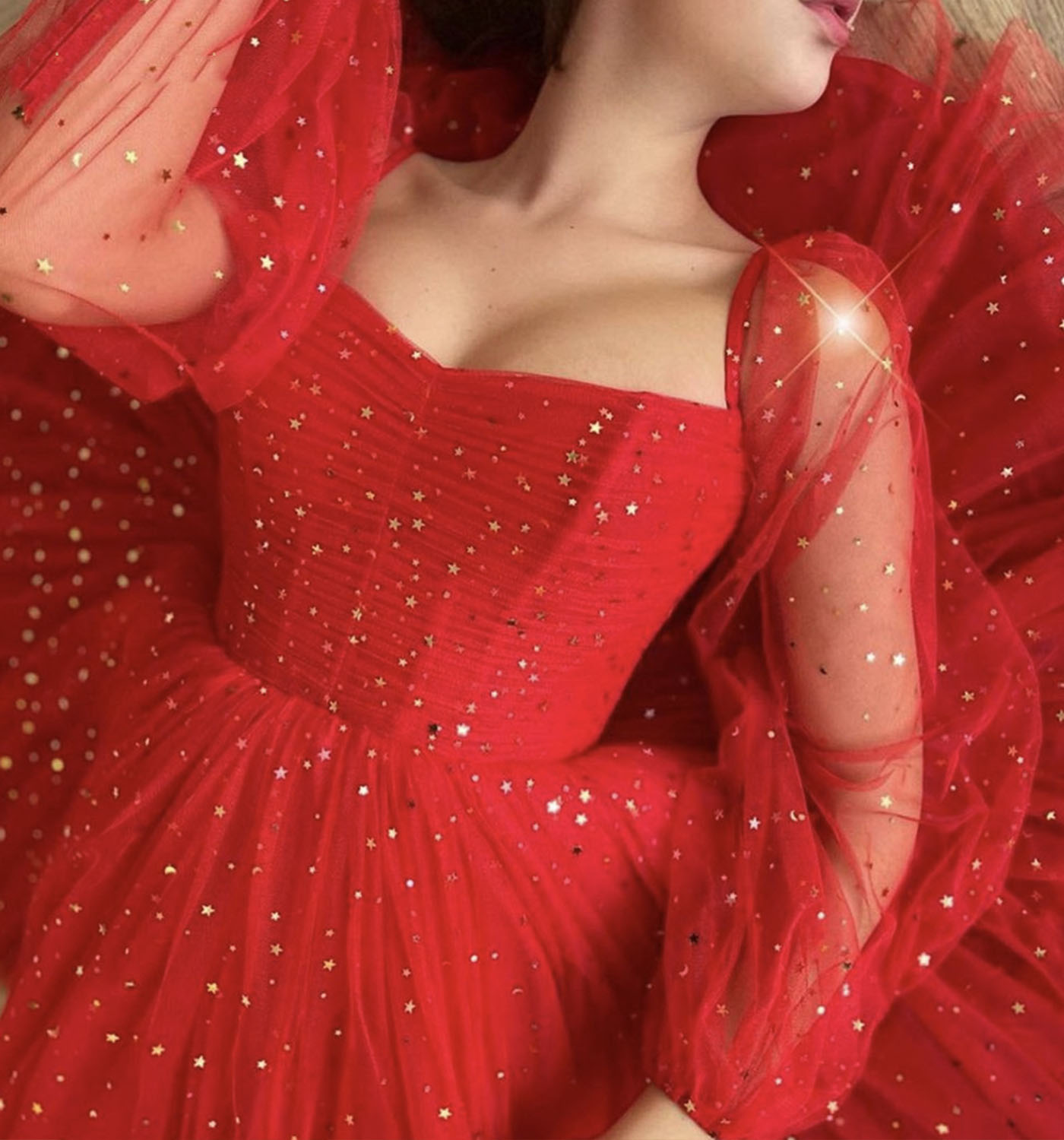 Red Tulle Short Prom Dress with Long Sleeve Cocktail Dress,1509