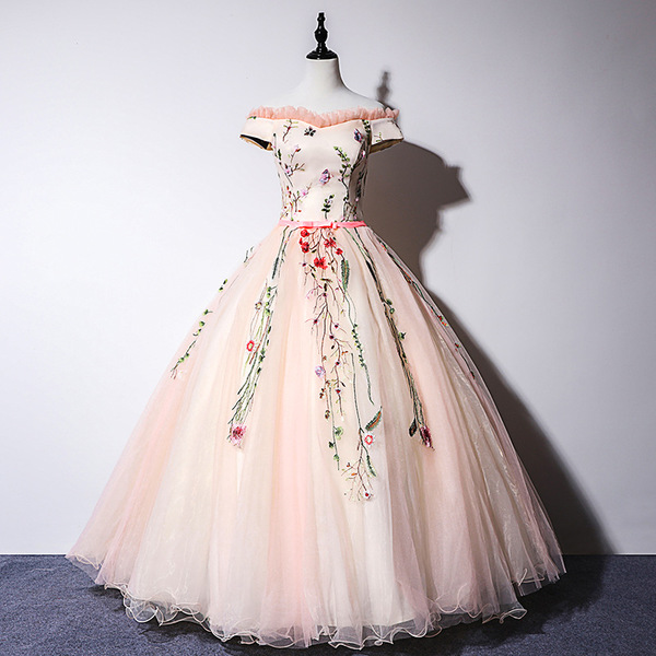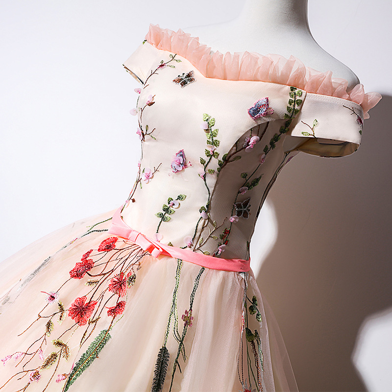 Cute Tulle Lace Long Prom Dress, A-Line Off Shoulder Evening Dress,1576