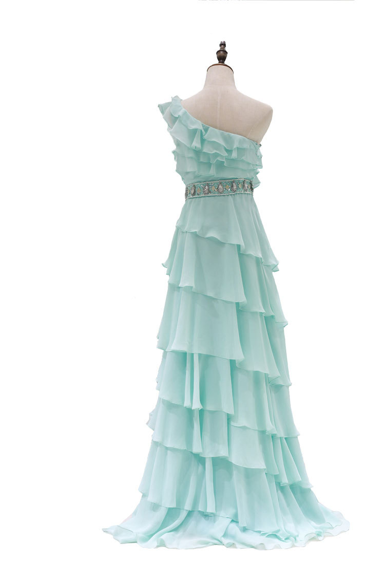 One Shoulder A-line CHiffon Prom Dress Beaded Floor Length Women Evening Dress,1603