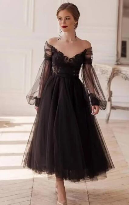 Romantic Ankle-length Long Sleeve Tulle A Line Evening Dress with Appliques,1655