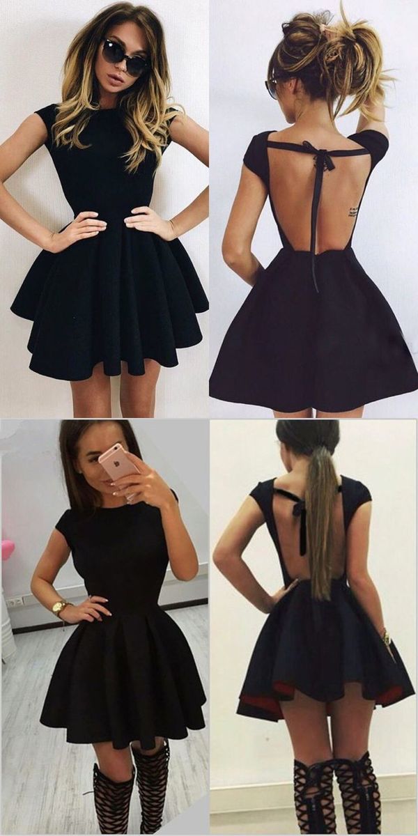 Black Satin Backless Homecoming Dress, Short Sleeveless Prom Dress, Simple Party Dress,1664