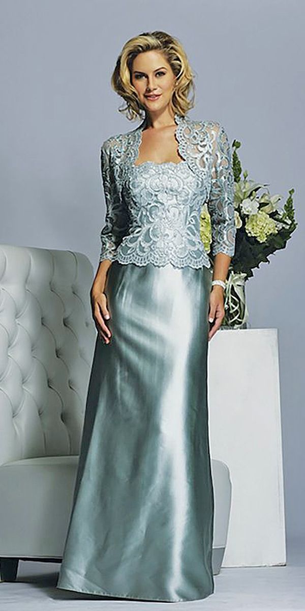 Elegant Sheath Blue Lace with Jacket Mother of Bride and Groom Dress Evening Dress,1931