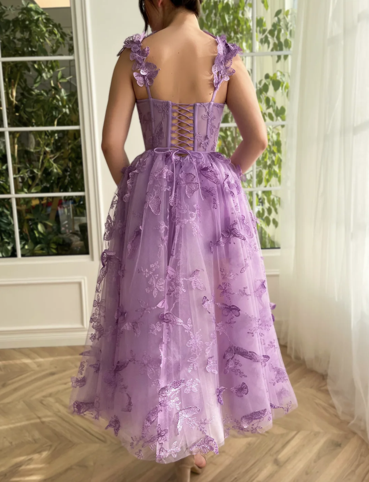 3D Butterfly Lace Appliques Prom Dresses for Women Tulle Wedding Guest Dress Long Formal Ball Gown,1939