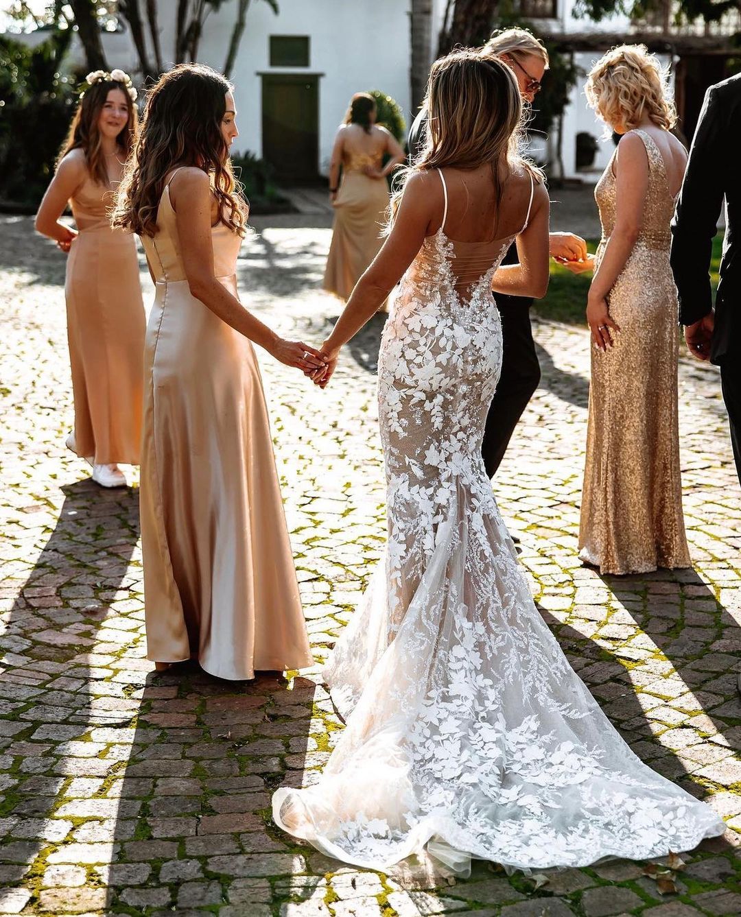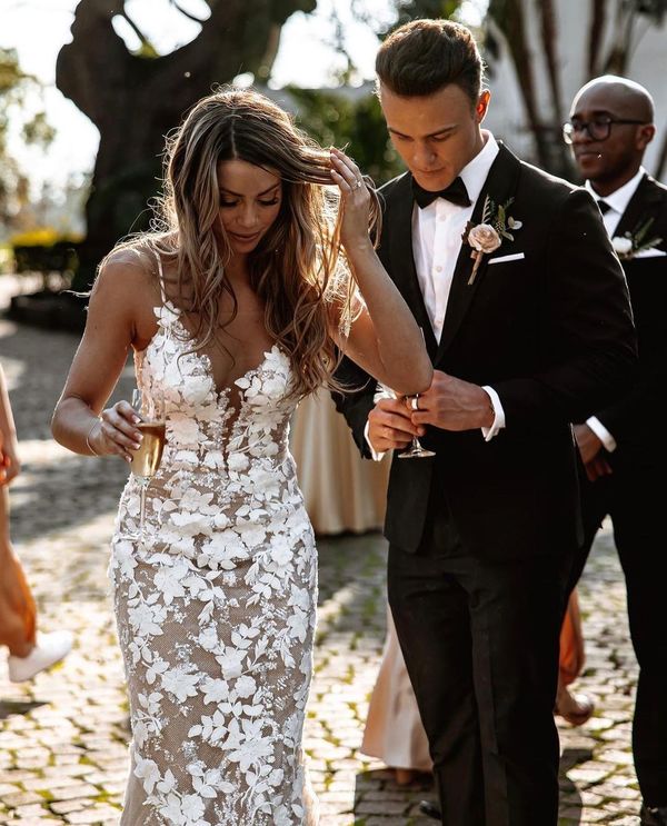Luxurious Mermaid V Neck Lace Wedding Dresses,1948