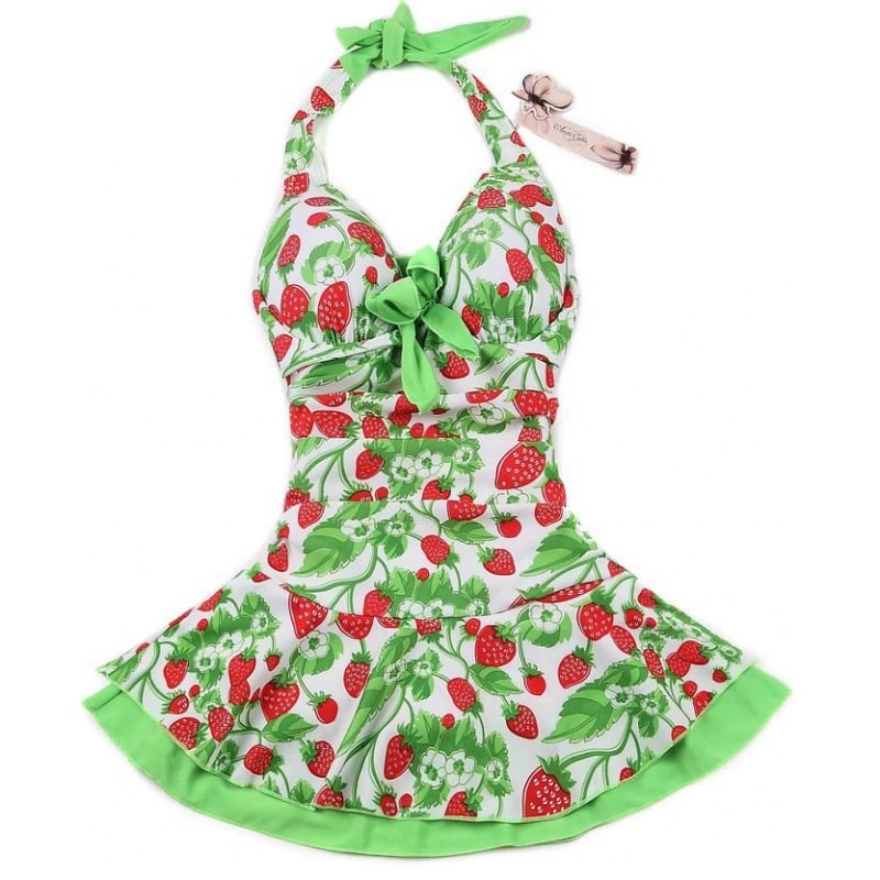 Women Strawberry Swim Dress, Cute Strawberry Print Halter Swimsuit, Strawberry Halter One Piece Swimsuit,strawberry Bikini