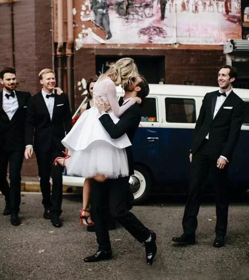 Modest Sheer Illusion Short Wedding Dress Bridal Dress,1970